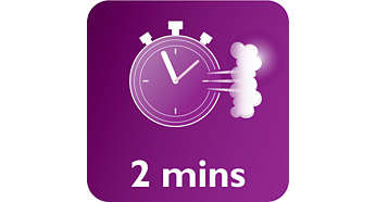 | Gotowość do użytku w 2 minuty, nieograniczone uzupełnianie Para na poziomie maksymalnym wydobywa się już po 2 minutach, a wodę można uzupełnić w dowolnym momencie. |