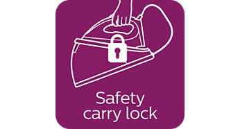 Żelazko można zabezpieczyć, blokując je na podstawie Żelazko z generatorem pary jest wyposażone w zabezpieczenie na czas przenoszenia. Można bezpiecznie zablokować żelazko na podstawie, aby zmniejszyć ryzyko dotknięcia gorącej stopy. Można też bez problemu przenosić generator pary. |