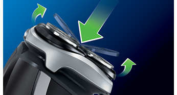 | Flex & Float dostosowuje się do twarzy i szyi Automatyczne dostosowanie do kształtu twarzy i szyi zapewnia gładsze golenie. |