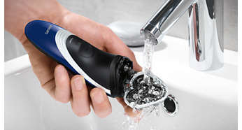 Golarkę wystarczy opłukać Wystarczy otworzyć głowicę i dokładnie opłukać ją pod strumieniem bieżącej wody. |