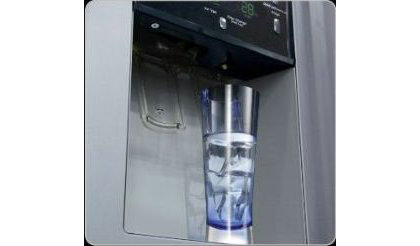 Bardzo wysoki podajnik do wody i lodu ułatwia napełnianie wysokich szklanek kostkami lodu i wodą, a także pokruszonym lodem. Jest on też znacznie łatwiejszy do czyszczenia.