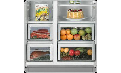 Duże szuflady w lodówce i zamrażarce ułatwiają wyjmowanie żywności i umożliwiają przechowywanie większych gabarytowo artykułów żywnościowych. Podział na dwie szuflady zarówno w lodówce, jak i w zamrażalniku pomaga oddzielić różne rodzaje żywności, a w szczególności pozwala uniknąć wymieszania niewielkich produktów.