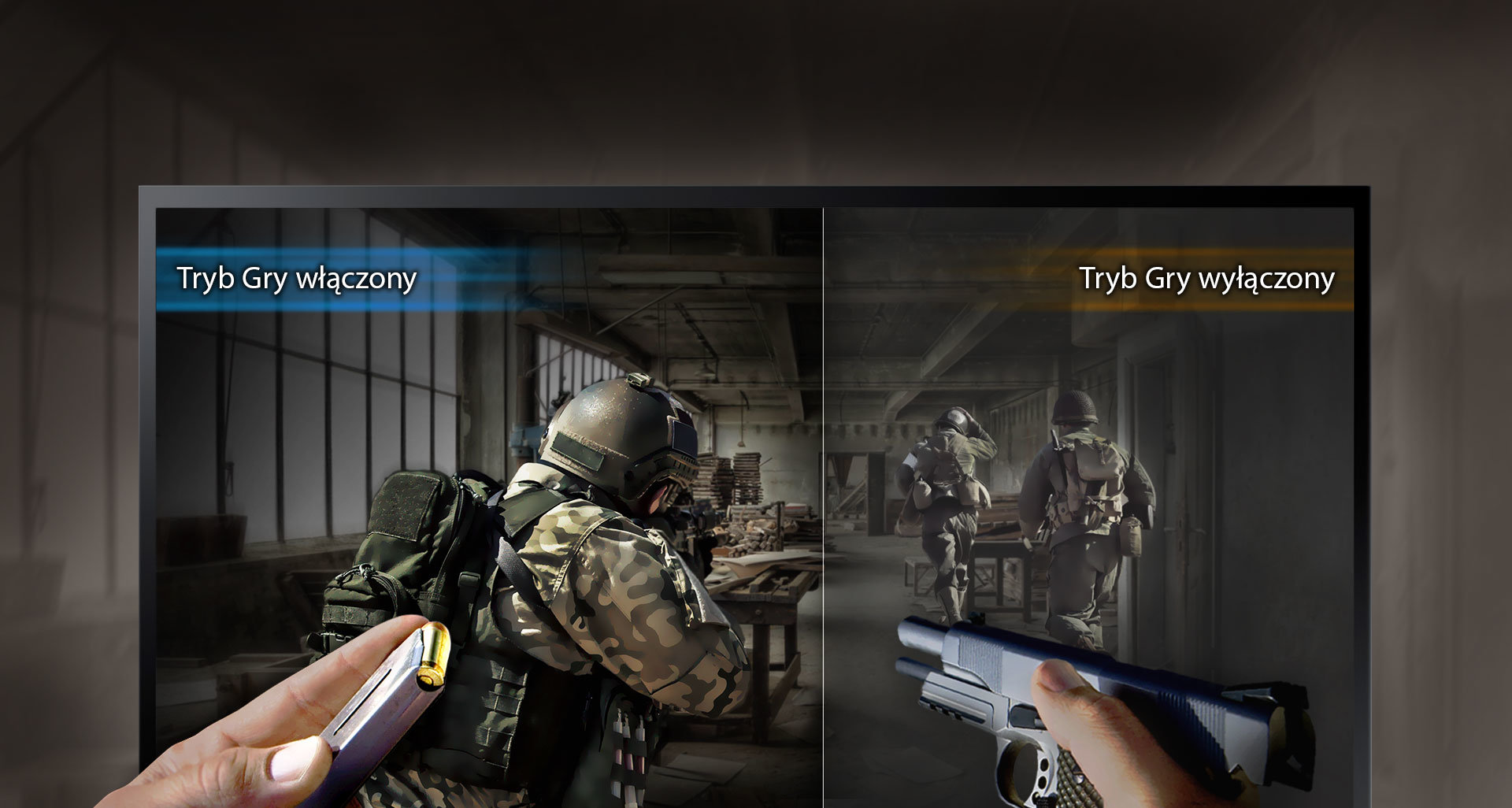 Jeszcze lepsza rozgrywka z Trybem Gry Tryb Gry błyskawicznie optymalizuje kolory i kontrast, abyś mógł zyskać jeszcze więcej radości z grania i zyskał przewagę nad rywalami. |