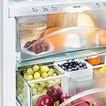 Komora BioFresh Im świeższe produkty, tym większa ich wartość odżywcza. Komory BioFresh umieszczone na teleskopowych szynach zapewniają idealne warunki do przechowywania żywności i zachowania jej świeżości na dłużej. Owoce, warzywa, mięso, ryby i nabiał przechowywane w temperaturze nieznacznie przekraczającej 0°C i idealnej wilgotności zachowują składniki odżywcze i witaminy, bogaty smak i apetyczny wygląd o wiele dłużej niż w tradycyjnej komorze chłodzenia. |