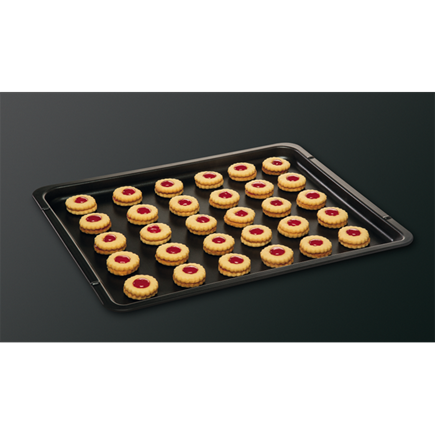 IDEALNIE UPIECZONE NAWET NAJWIĘKSZE PORCJE POTRAW Mniej nie zawsze znaczy lepiej, zwłaszcza jeśli chodzi o wspaniałe wypieki. Blacha do pieczenia w rozmiarze XL jest o 20% większa od standardowej, dzięki czemu umożliwia przygotowywanie większej ilości wypieków o równie doskonałej jakości. |