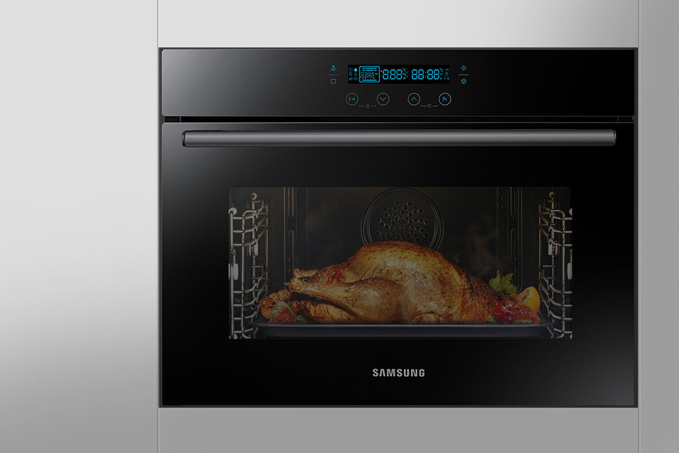 Piekarnik kompaktowy Samsung to doskonała pomoc w codziennym sporządzaniu posiłków oraz efektowny i perfekcyjnie dopracowany element wystroju każdej kuchni. Front wykonano z czarnego szkła. Na jego tle bardzo atrakcyjnie prezentuje się błękitny dotykowy wyświetlacz LED. Dopełnieniem designu jest elegancki uchwyt, który idealnie pasuje do dłoni.