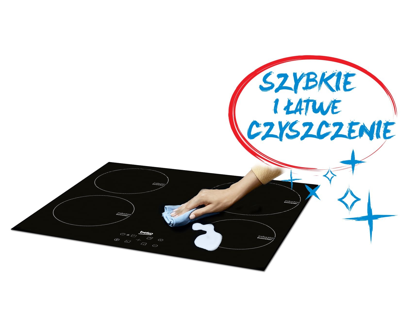 Szybkie i łatwe czyszczenie Ponieważ powierzchnia witroceramiczna płyty nie nagrzewa się, rozlane jedzenie nie będzie się przypalać - tym samym płyta jest łatwiejsza do utrzymania w czystości. |