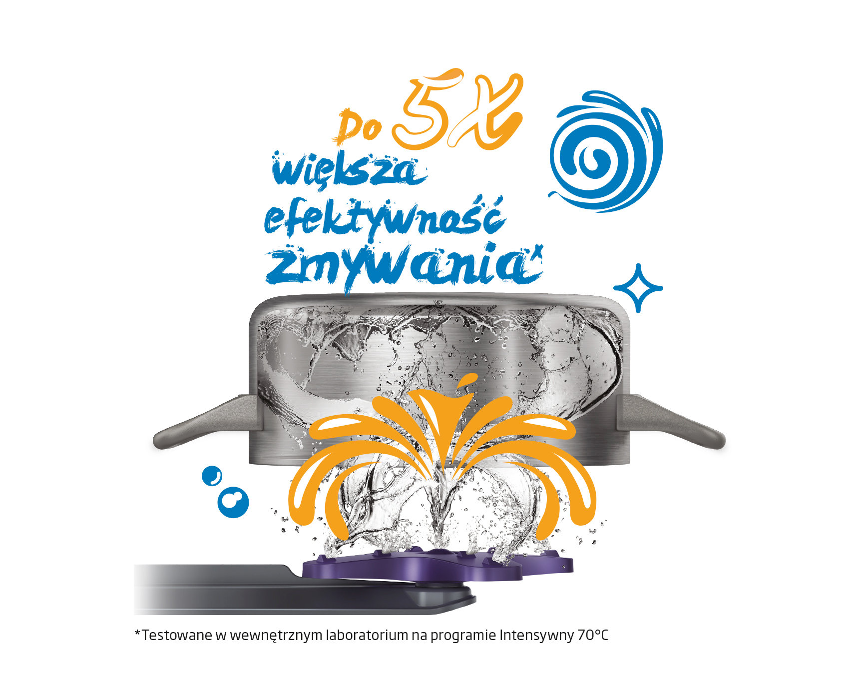 | AquaIntense | Zapewnij sobie dokładnie domyte naczynia w każdych warunkach AquaIntense to dodatkowe, ruchome ramię myjące zamontowane na dnie zmywarki. Dzięki niemu Twoje urządzenie jeszcze dokładniej umyje wszystko, co do niego włożysz, bez pomijania zakamarków czy szczelin, niezależnie od tego czy duże naczynia nie blokują głównego ramienia myjącego. |