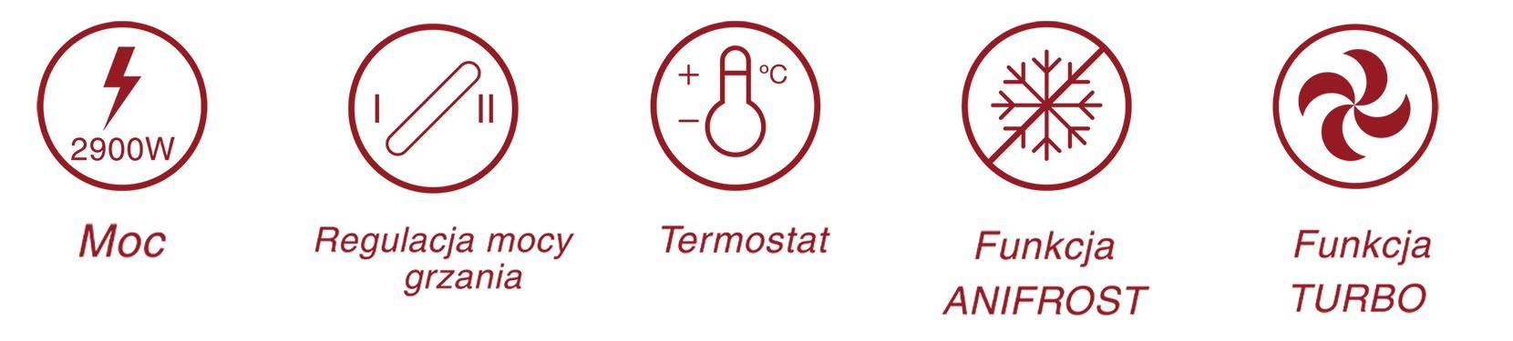 Funkcja „TURBO” - dodatkowy wbudowany termowentylator o mocy 400 W, zwiększający zasięg dystrybucji ogrzanego powietrza