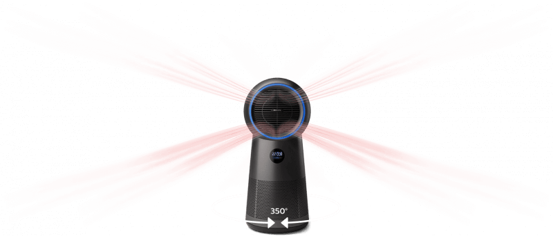 Oczyszczanie powietrza dotrze tam gdzie tego potrzebujesz - regulowana oscylacja 350°.