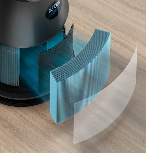 Usuwa do 99,95% zanieczyszczeń o wielkości 0,003 μm, w tym smog, bakterie, alergeny, kurz, sierść zwierząt i szkodliwe gazy oraz wirusy*.