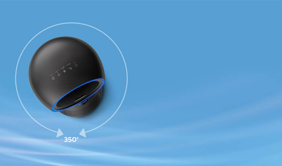 Oczyszczone powietrze dociera wszędzie, gdzie tego potrzebujesz. Oczyszczacz, dzięki regulowanej oscylacji 350° umożliwia cyrkulację powietrza w pomieszczeniu zgodnie z Twoimi potrzebami.