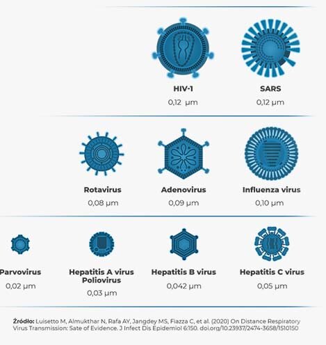 Mając na uwadze, że rozmiary wirusów są rzędem wielkości od 0,01 do 1 mikrometra, a najmniejsze cząsteczki smogu to wielkość poniżej 0,1 mikrometra to tak zbudowany system filtracji jest najbardziej skuteczny.