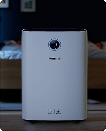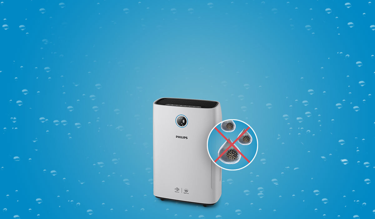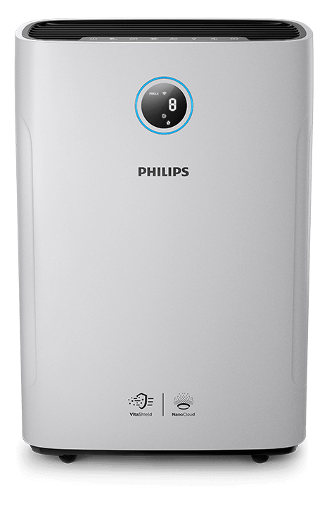 Technologia NanoCloud nawilża powietrze, wykorzystując naturalny proces parowania. Lekka mgiełka jest tworzona przez cząsteczki wody mikroskopijnej wielkości. Ich niewielkie rozmiary utrudniają drobnoustrojom przenoszenie się w powietrzu. Dzięki temu Oczyszczacz 2w1 zapewnia o 99% mniej bakterii*, a Ty możesz się cieszyć nawilżonym, zdrowym powietrzem.