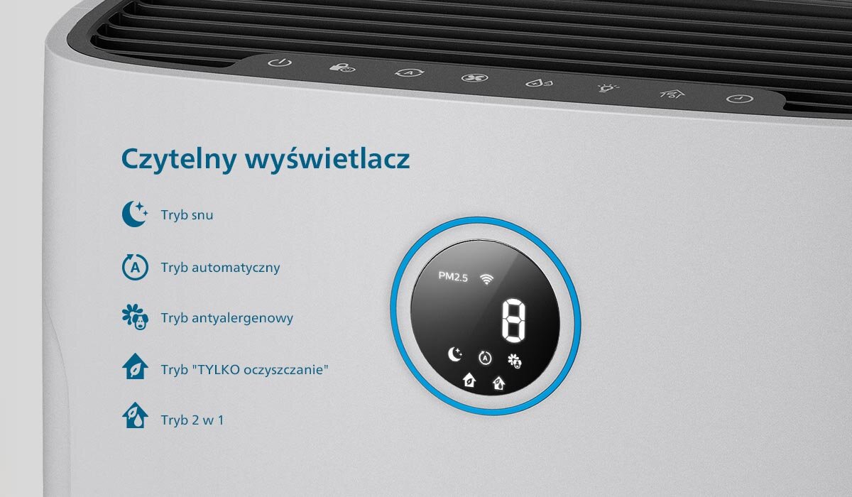 Oczyszczacz stale monitoruje poziom zanieczyszczenia powietrza i samodzielnie dobiera moc pracy.