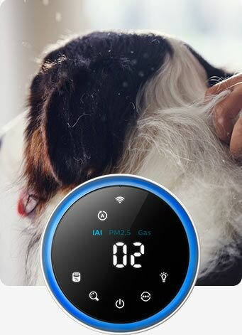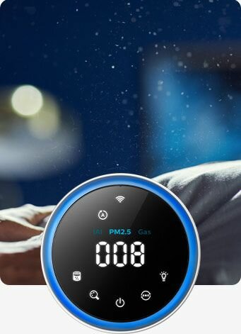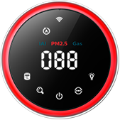 Czujnik jakości powietrza wykrywa cząsteczki w powietrzu mniejsze niż 2,5 μm, a liczba cząsteczek zostaje wyświetlona w czasie rzeczywistym zarówno w formie liczbowej na ekranie wyświetlacza, jak i za pomocą kolorowego wskaźnika LED.