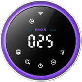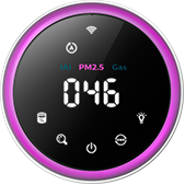 Wskaźnik prezentuje jakość powietrza w pomieszczeniach w zakresie od niebieskiego (dobra), przez fioletowy (średnia), różowy (zła), aż do czerwonego (bardzo zła).
