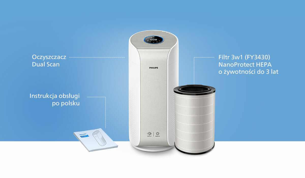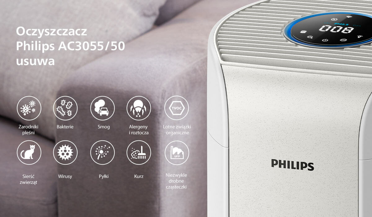 - Oczyszczacz powietrza PHILIPS Dual Scan AC3055/50 Wi‑Fi