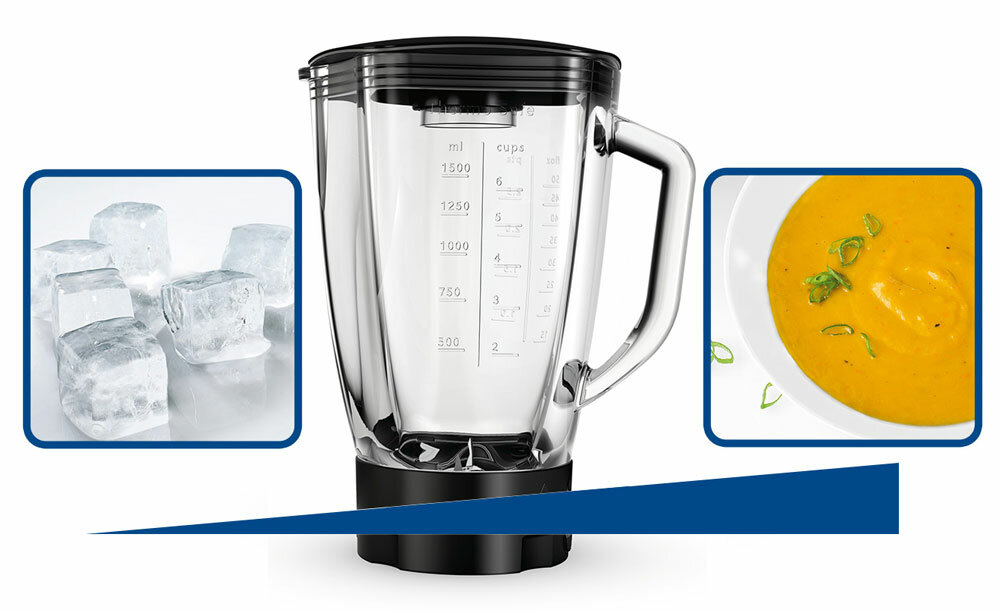 Nieważne czy chcesz pokruszyć kostki lodu, rozdrobnić mrożone owoce, przygotowywać przepyszne smoothie i orzeźwiające, lodowe napoje czy też zmiksować gorącą zupę. Szklany blender ThermoSafe jest zrobiony z grubego szkła odpornego na wysokie i niskie temperatury, a jego innowacyjna konstrukcja redukuje hałas.