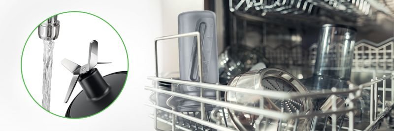 Minimalistyczna budowa urządzenia pozwala na jego łatwe czyszczenie. Dla zachowania bezpieczeństwa przy myciu dzbanka, możesz wyjąć ostrze blendera. Ponadto, wszystkie zdejmowane elementy można myć w zmywarce. To dobry sposób na skuteczną konserwację i dbałość o urządzenie.