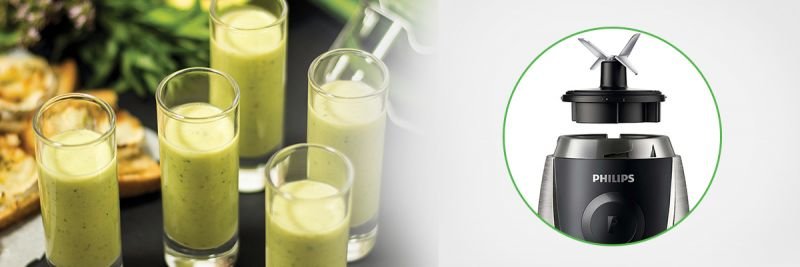 Miniblender Philips to nowy sposób na błyskawiczne przygotowanie smacznych napojów! Teraz zdrowe owocowe soki, mleczne koktajle, a także pożywne zupy czy kremowe dipy przygotujesz w jednej chwili. Wystarczy chwila i gotowe!