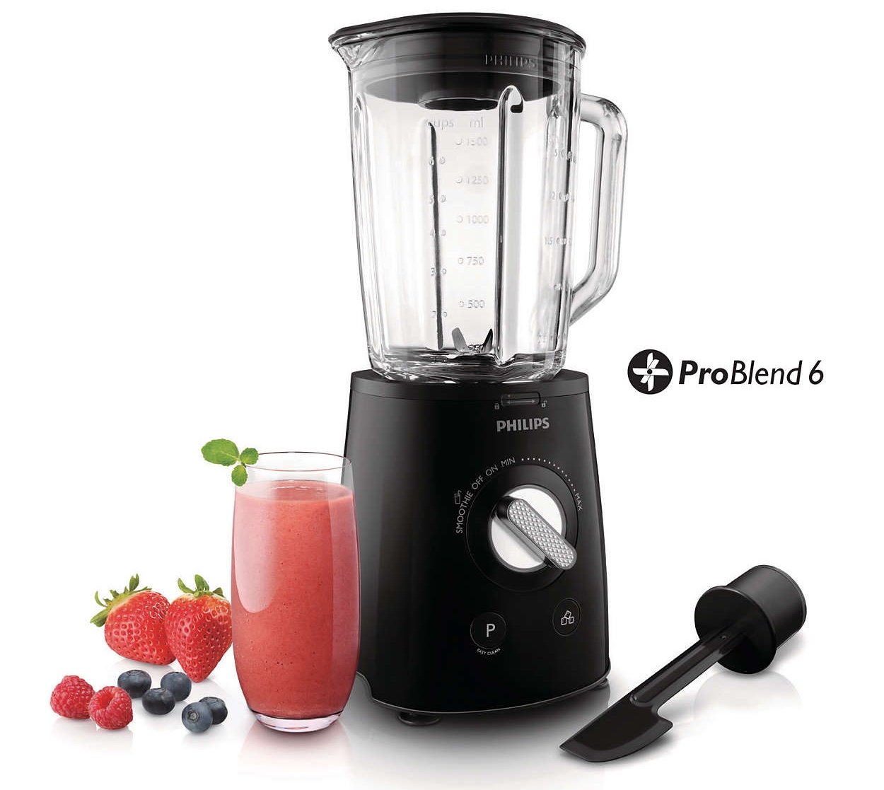 | Najlepsze miksowanie, bez grudek Technologia ProBlend 6 zapewniająca o 50% dokładniejsze rozdrobnienie* -700 W -Szklany dzbanek o pojemności 2 l -Z łopatką -ProBlend 6 |