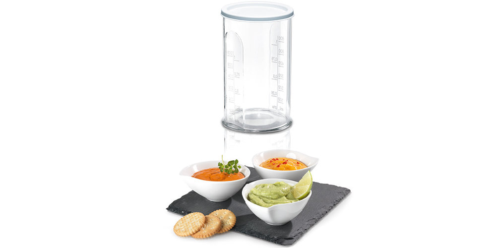 Sporządzone wcześniej: pyszną zupę, zdrowe smoothies, lub inne płynne potrawy, możesz zamknąć i przechować w specjalnym pojemniku w lodówce. Pojemnik zawiera miarkę, dzięki czemu doskonale sprawdzi się jako dozownik podczas przygotowywania przysmaków.
