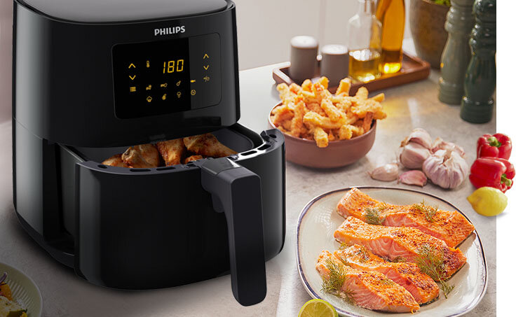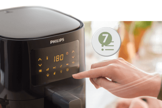 Zaledwie jednego naciśnięcia przycisku potrzeba, by przygotować mrożone przekąski, świeże frytki, mięso, ryby, podudzia z kurczaka, grillowane warzywa, a nawet ciasto. Gotuj jeszcze łatwiej, korzystając z 7 zaprogramowanych ustawień.