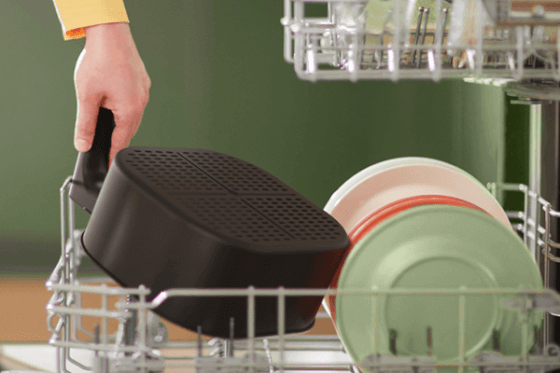 Czyszczenie urządzenia Ovi jest szybkie i proste. Nieprzywierającą siateczkę z kosza QuickClean można zdjąć do czyszczenia, a wszystkie odłączane części nadają się do mycia w zmywarce.