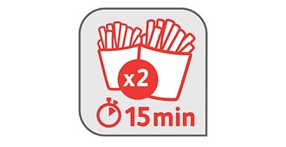 2 porcje frytek w ciągu 15 min 500 g cienko pokrojonych mrożonych frytek usmażone w ciągu 15 min w temp. 200°C z czasem nagrzewania |