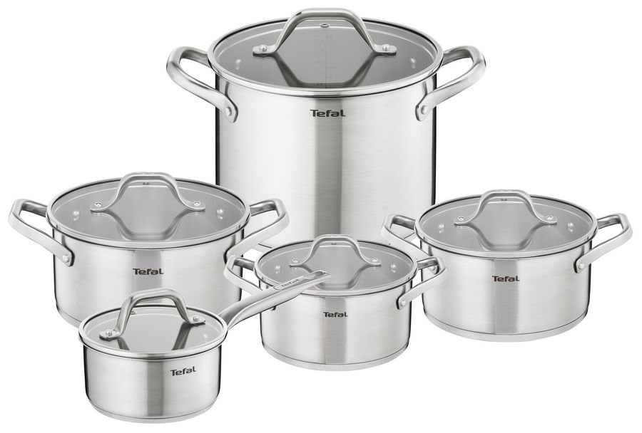 Najwyższej jakości stal nierdzewna 18/10, wytrzymała i błyszcząca. Sprawia, że garnki Tefal są super odporne na korozję (rdzę) oraz uszkodzenia mechaniczne, powstawanie trwałych zabrudzeń oraz odbarwień czy zmatowień. Wydłużony okres gwarancji na stal nierdzewną (10 lat). Eleganckie wzornictwo (połączenie szczotkowanej stali nierdzewnej – korpus i błyszczącej – dno), ergonomia użytkowania, funkcjonalne rozwiązania (miarka, wyprofilowane brzegi, nienagrzewające się uchwyty z odlewu stalowego). Bardzo grube dno indukcyjne, stworzone w technologii High Impact Bonding (metoda łączenia dna i korpusu garnka przy użyciu prasy łączącej oba elementy z siłą 250ton), zapewnia bardzo wysoką odporność na odkształcenia i równomierną dystrybucję ciepła na całej powierzchni garnka. Stal nierdzewna Tefal to jeden z najbardziej higienicznych materiałów używanych do produkcji naczyń kuchennych. Jest to materiał całkowicie neutralny - nie zmienia cech organoleptycznych pożywienia ani nie zmienia jego składu chemicznego. Żadne substancje nie przenikają także ze stali nierdzewnej do żywności. Możliwość mycia w zmywarce. Przystosowane do użycia na wszystkich rodzajach kuchenek w tym na KUCHENKACH INDUKCYJNYCH. Możliwość używania garnków w piekarniku (garnki do 260°C, a pokrywki do 170°C).