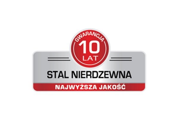 Najwyższa jakość stopu stali nierdzewnej potwierdzona wydłużoną gwarancją na stal nierdzewną - 10 lat.
