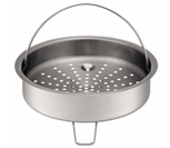 Pojemnik, który pozwala na przyrządzanie żywności nad wodą, zapobiega trafianiu witamin i soli mineralnych do gotującej się wody | ||