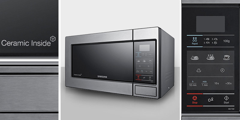 Wykorzystywana przez Samsung powłoka Ceramic Inside™ zapewnia higienę i łatwą pielęgnację urządzenia. Bez problemu pozbędziesz się tłustych i zaschniętych zabrudzeń. Nie musisz również martwić się o bakterie i nieprzyjemny zapach. Technologia, przy pomocy której stworzone jest wnętrze kuchenki, jest podobna do wykorzystywanej przy wyrabianiu wysokiej jakości ceramiki. To sprawia, że urządzenie jest trwalsze, bardziej odporne na zużycie i zarysowania.