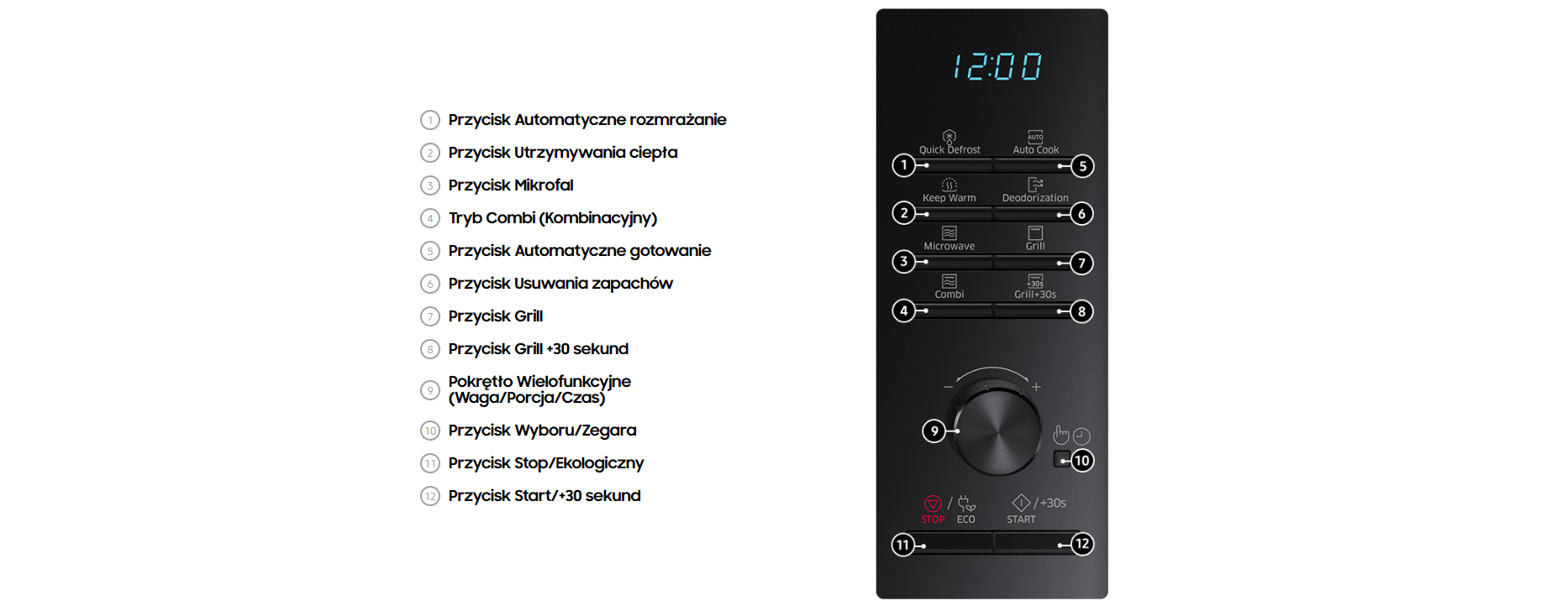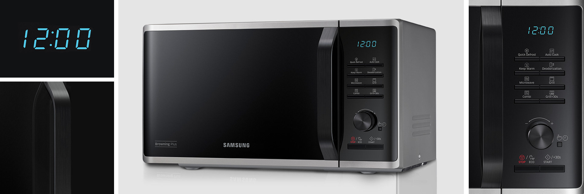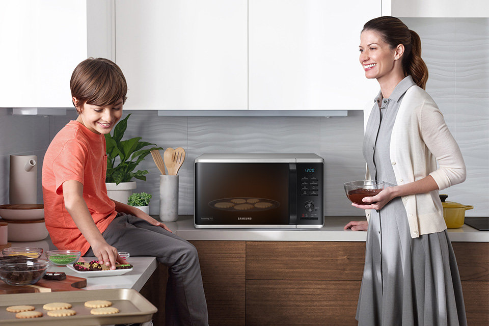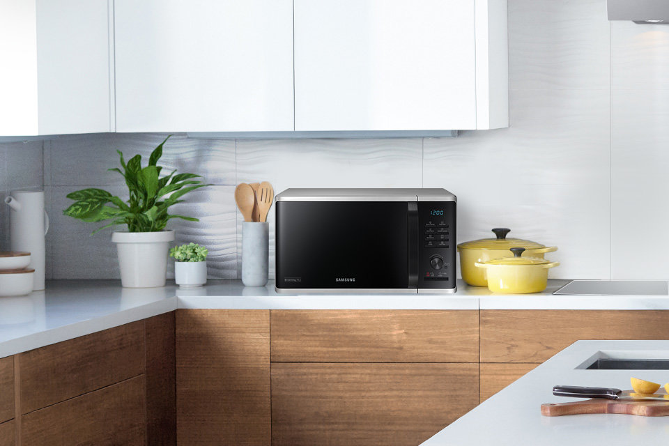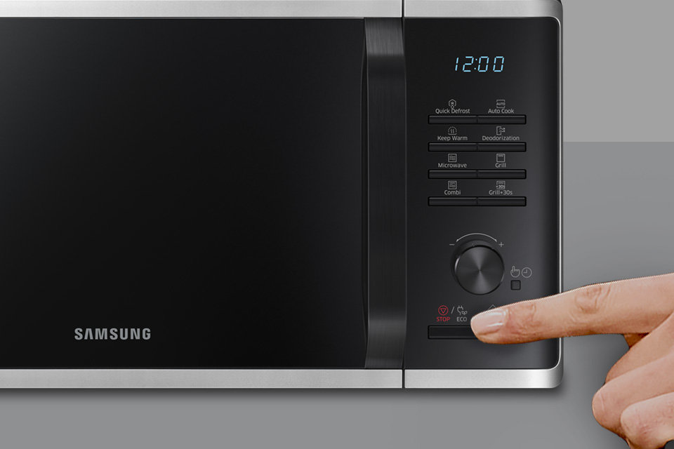 Praktyczny i elegancki panel połączony z wyraźnym wyświetlaczem LED znacznie ułatwi obsługę kuchenki mikrofalowej. Sterowanie jest elektroniczne za pomocą opisanych przycisków typu Tact. Korzystanie z kuchenki Samsung jest wyjątkowo proste i intuicyjne.
