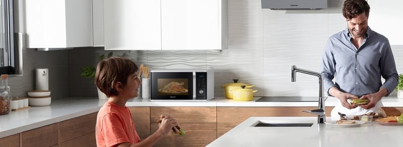 Coraz częściej dyskutuje się o zaletach zdrowej diety i rezygnacji z gotowych posiłków. Aby zadbać o zdrowie, większość z nas decyduje się na przyrządzanie posiłków ze świeżych produktów. Kuchenka Samsung posiada specjalne programy do przygotowywania warzyw, ryb oraz drobiu. Szybko i łatwo przygotujesz zdrowy posiłek zarówno dla siebie, jak i całej rodziny.