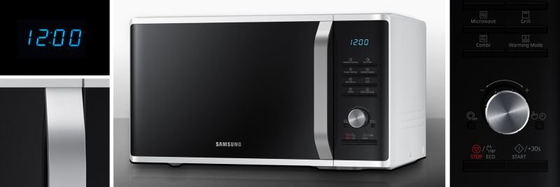 Praktyczny i elegancki panel połączony z wyraźnym wyświetlaczem LED znacznie ułatwi obsługę kuchenki mikrofalowej. Sterowanie jest elektroniczne za pomocą opisanych przycisków typu Tact. Korzystanie z kuchenki Samsung jest wyjątkowo proste i intuicyjne.