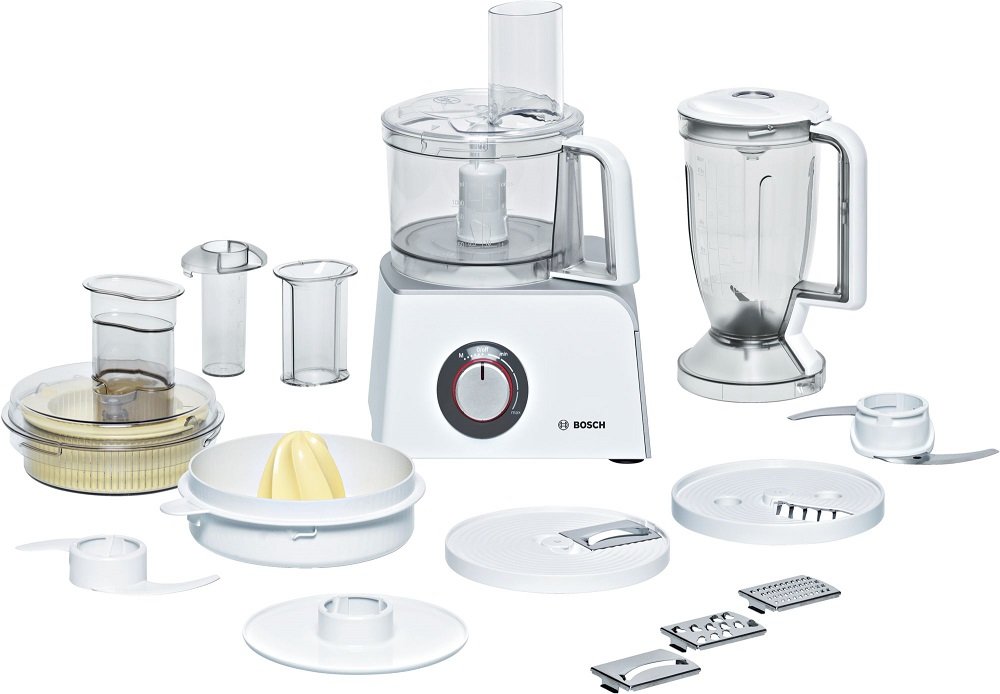| Funkcje: | Krojenie na plastry, Mieszanie, Miksowanie, Rozdrabnianie, Tarcie na wiórki, Tarcie ziemniaków, Ubijanie piany, Wyciskanie soku |