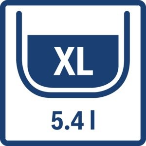 Bardzo duża misa ze stali szlachetnej o pojemności 5,4 l z dwoma wygodnymi oraz brzegiem ułatwiający opróżnianie zawartości pozwala pomieścić do 3,5 kg ciasta.