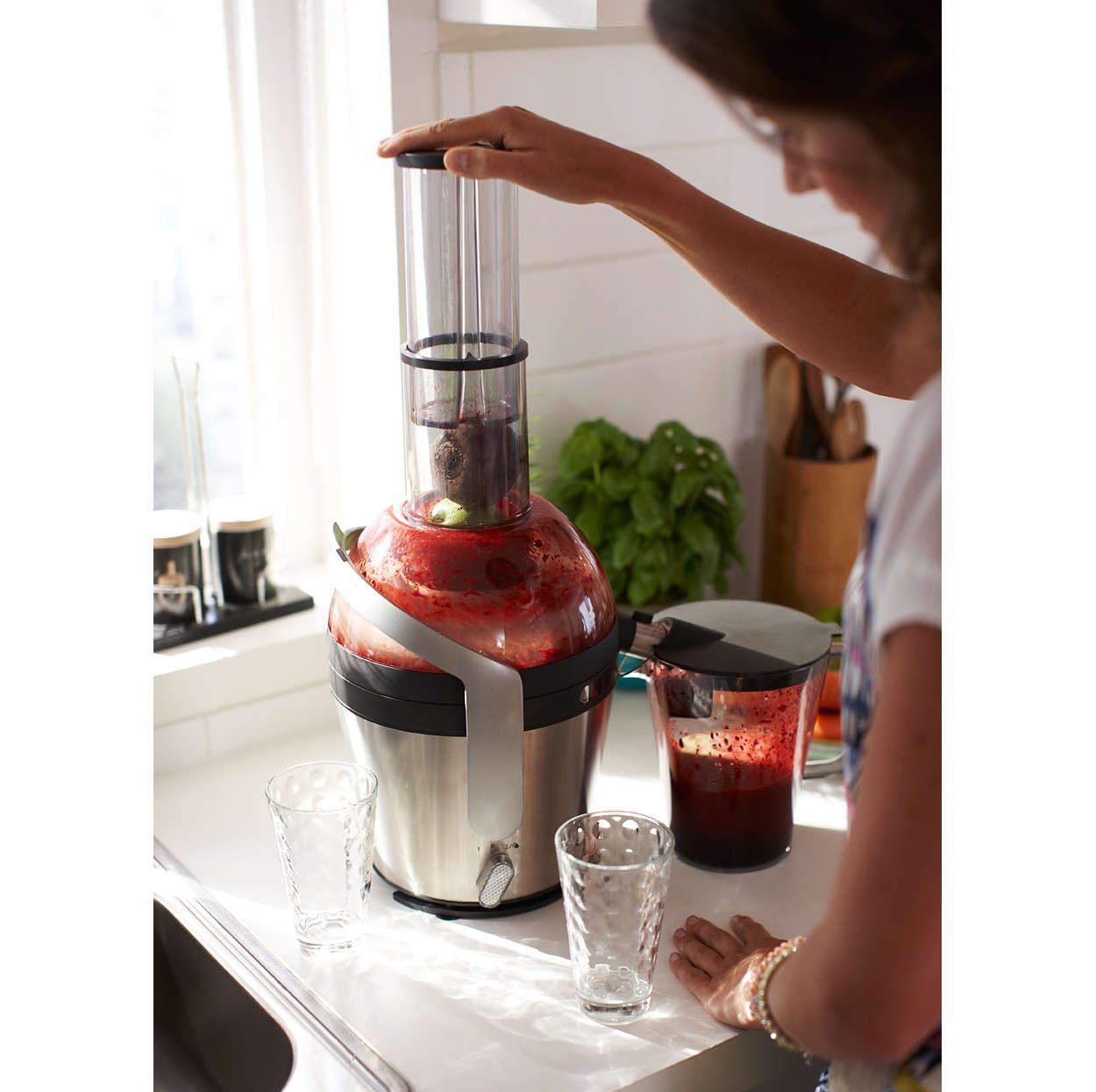 | Funkcje: | Możliwość mycia elementów w zmywarce, Wyjmowany zbiornik na miąższ, Pojemnik na sok |