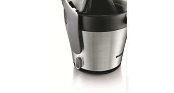| Dużo soku bez zbędnej krzątaniny! O 10% więcej soku* i krótszy czas czyszczenia! -1000 W -QuickClean -2,5 l, bardzo duży otwór na produkty -Blokada kapania |