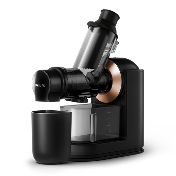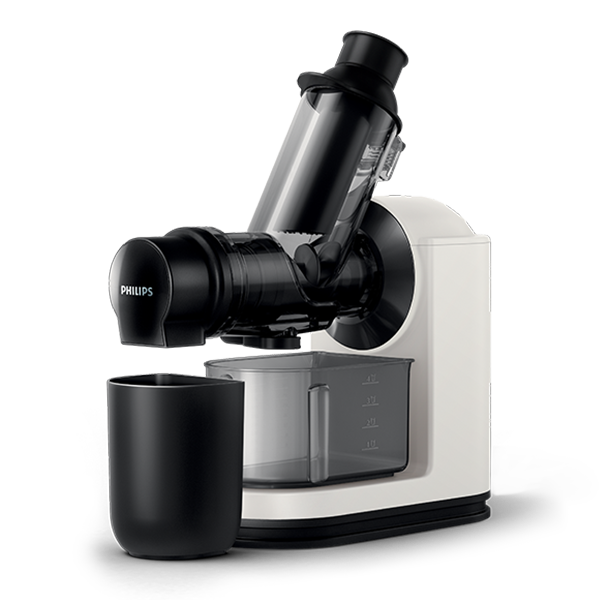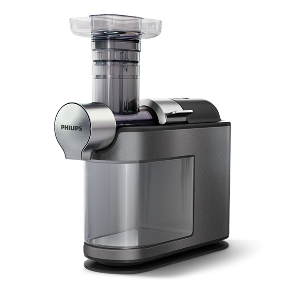 Wyciskarka Philips zmieści się w każdej kuchni – została tak zaprojektowana, żeby zajmować jak najmniej miejsca. Jej szerokość to zaledwie 11 cm, a w pojemniku na sok można schować pojemnik na miąższ. W urządzeniu znajduje się także schowek na przewód, dzięki czemu masz więcej miejsca na blacie.