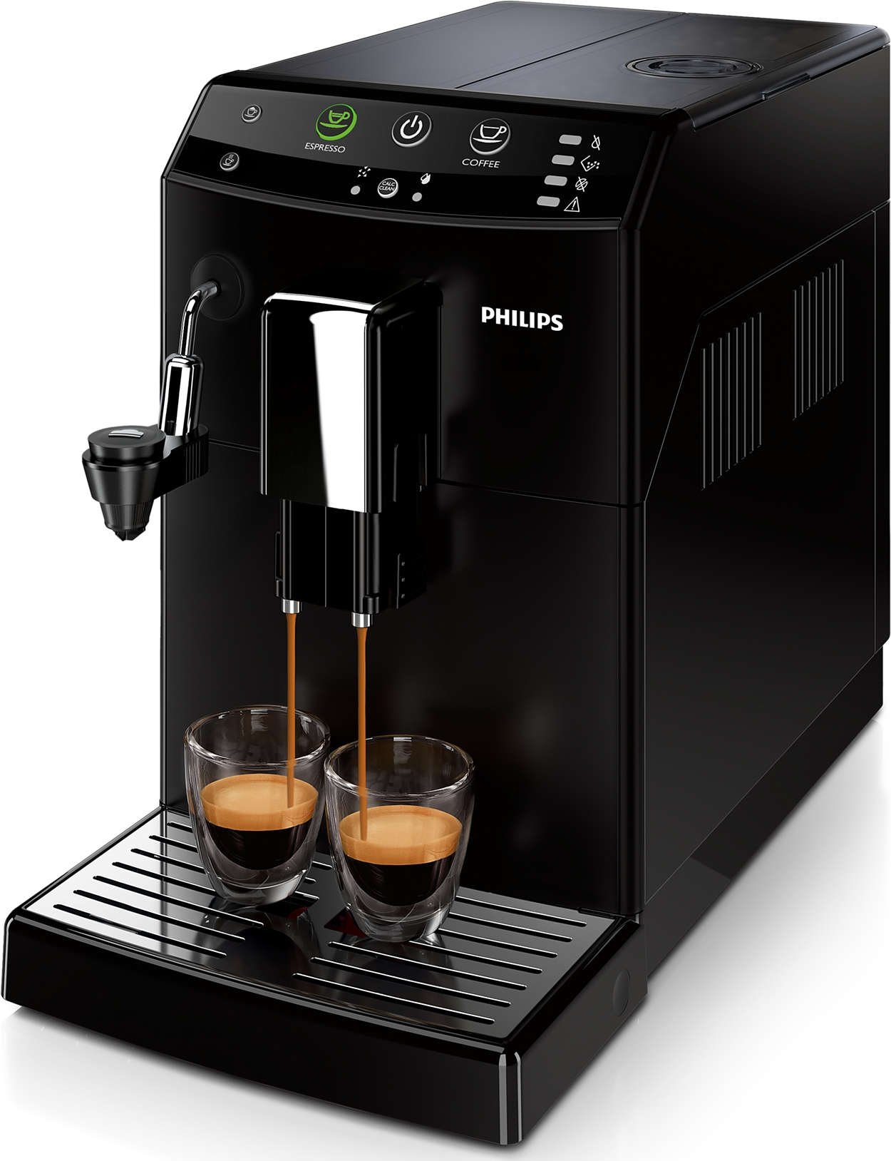 Espresso ze świeżo zmielonych ziaren kawy za dotknięciem przycisku Jeśli naciśniesz jeden przycisk i poczekasz kilka sekund, otrzymasz filiżankę (lub dwie) doskonale zaparzonego espresso przygotowanego ze świeżo zmielonych ziaren kawy. |
