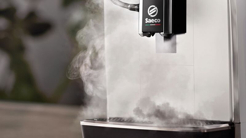 Strumień gorącej pary czyści system spieniania mleka po każdym jego użyciu oraz usuwa 99,99% mikroorganizmów*.