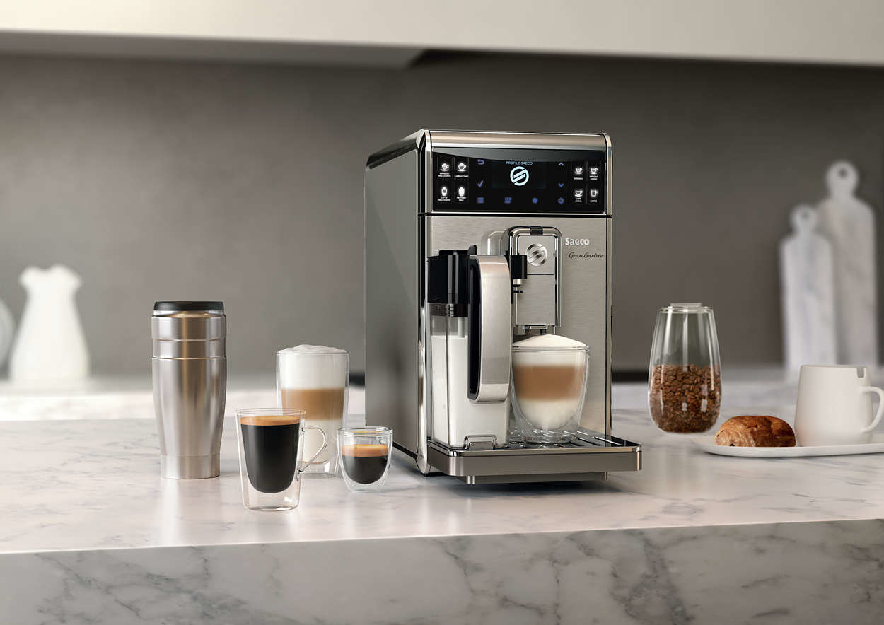 | Wyjątkowy wybór napojów Ekspres Saeco GranBaristo umożliwia przygotowanie niezrównanego wyboru napojów na każdą okazję dzięki opatentowanej komorze parzenia VariPresso. Sekret tkwi w regulowanym ciśnieniu parzenia, które musi być wysokie do przygotowania intensywnego espresso o bogatym smaku lub niższe do zaparzenia większej, klasycznej kawy. |