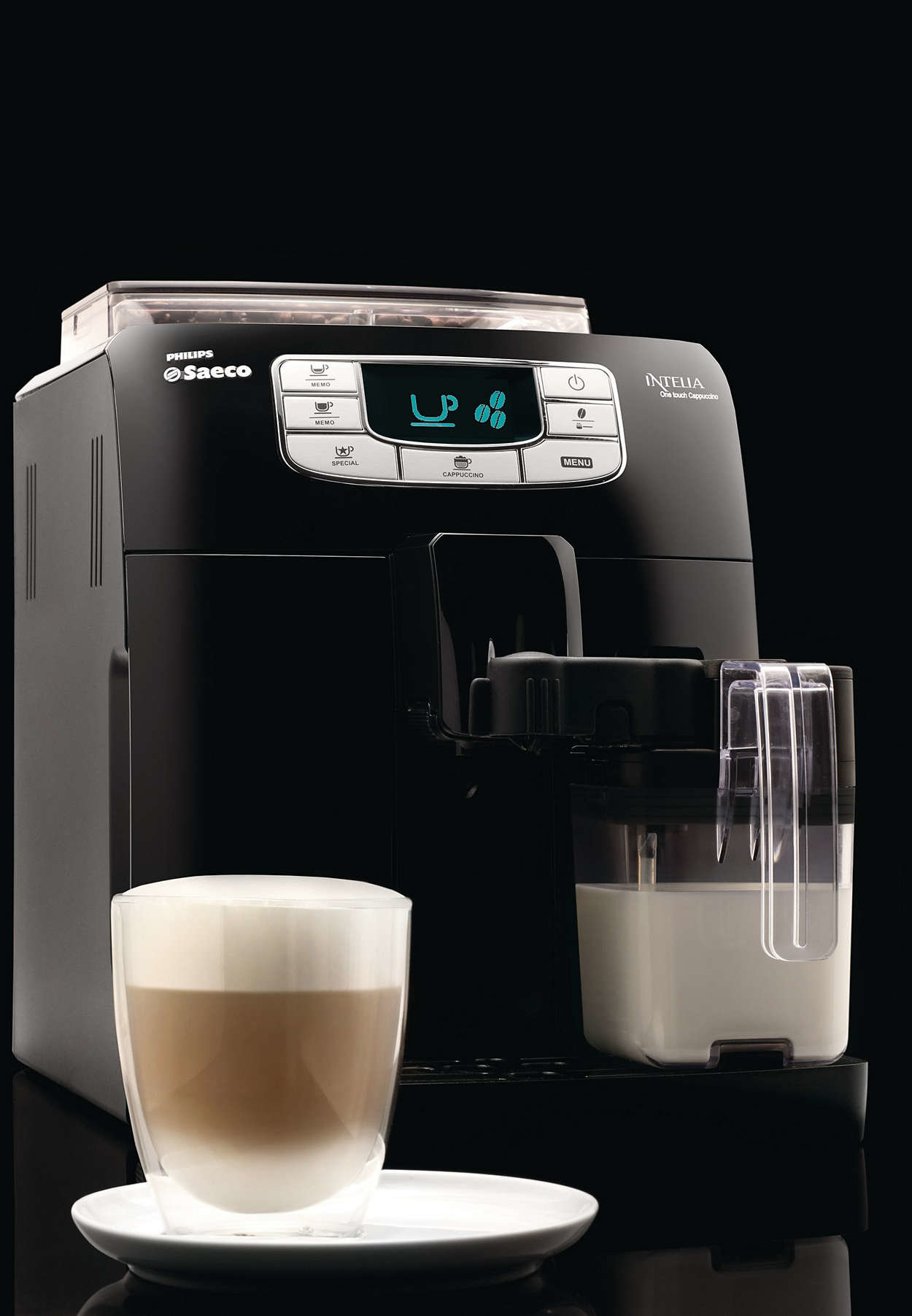 Tylko automatyczny ekspres Saeco Intelia pozwala uzyskać doskonałe espresso oraz umożliwia łatwą obsługę, regulację i czyszczenie. Przygotuj idealne cappuccino lub espresso za dotknięciem jednego przycisku. |