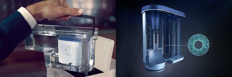 Nowy opatentowany filtr AquaClean poprawia jakość oczyszczania wody i zapobiega osadzaniu się kamienia w obiegu wewnętrznym ekspresu. Ciesz się do 5000* zaparzonych filiżanek kawy bez konieczności odkamieniania.