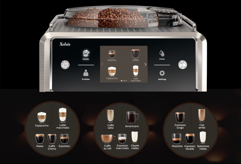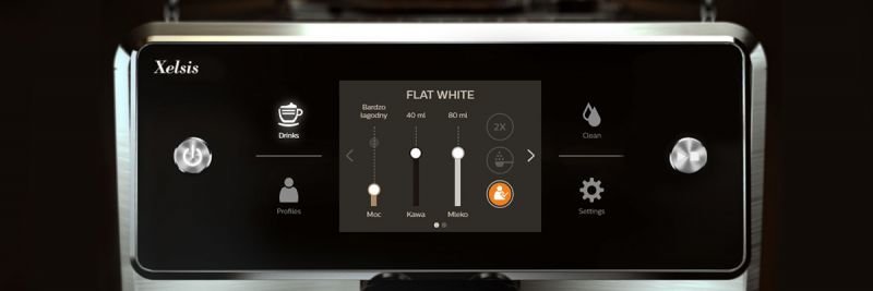 Esencjonalne Ristretto, aromatyczne Espresso czy zmysłowe Cappuccino. Masz pełną różnorodność napojów oraz idealne proporcje kawy i mleka na wyciągnięcie ręki. Jednym dotknięciem ustawisz ulubioną moc, temperaturę oraz proporcje kawy i mleka. Dzięki Saeco Xelsis poczujesz się jak barista we własnym domu, codziennie rozkoszując się filiżanką pełną perfekcji.