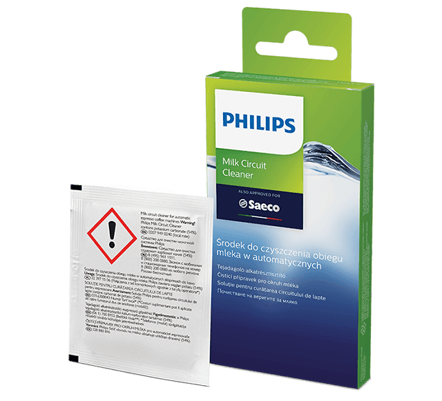 ** Środek do czyszczenia obiegu mleka stosuje się w ekspresach Saeco.