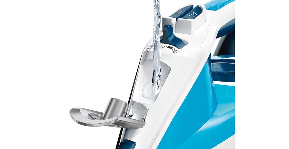 | Funkcje: | Automatyczne wyłączenie żelazka, Funkcja samooczyszczenia, System antywapienny, Blokada kapania, Pionowy wyrzut pary, Regulacja strumienia pary, Spryskiwacz |
